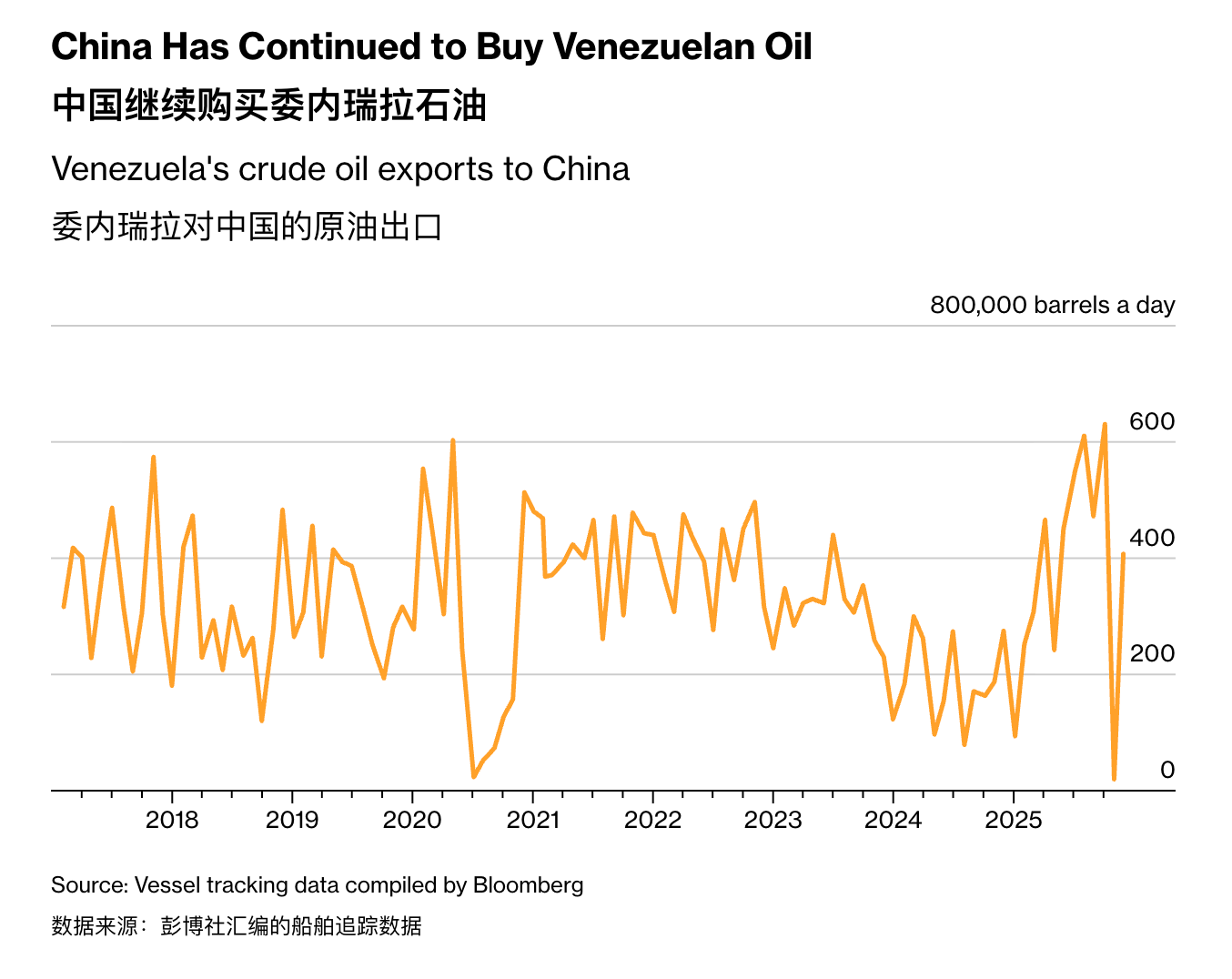 官方数据说2025年3月后中国没收到委内原油,但船舶追踪显示,去年下半年运量有增加。这些油走特殊路线,两个多月才到,还要多次船对船转运,比较难追踪。