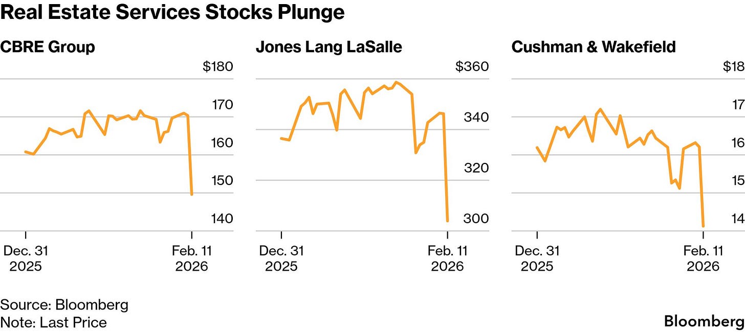 现在,只要是高收费、劳动密集型、可能受AI颠覆的商业模式都会被扫射—— 这种“扫射型交易”或“风暴眼型交易”已经有名字了:AI scare trade(AI恐慌交易)。